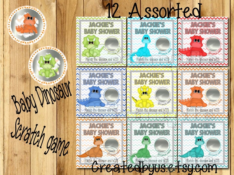 Baby Shower Scratch Off Card Baby Boy Dinosaur Scratch Game Scratch Dinosaur Baby Shower Ideas Game Favors Scratch Tags Scratchers 12 Precut