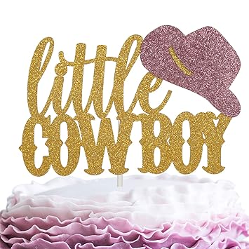 Little Cowboy Birthday Cake Topper Gold Glitter Cowboy Hat Cake Decor Baby Shower Boys Birthday