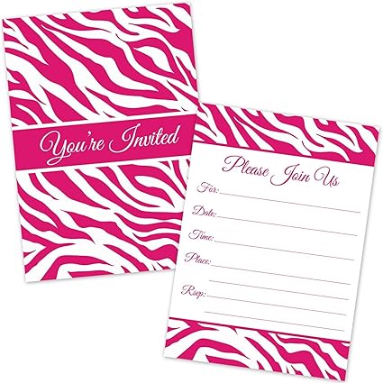 Hot Pink Zebra Stripes Party Invitations For Girls Birthday Bridal Shower Baby Shower Bachelorette Party 20 Count With Envelopes