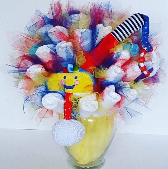 Golf Diaper Bouquet Baby Shower Centerpiece Baby Shower Golf Ideas Unique Baby Shower Decorations Baby Shower Gift New Baby Gift