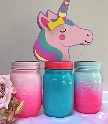 Amazon Com Set Of 3 Unicorn Theme Painted Mason Jars