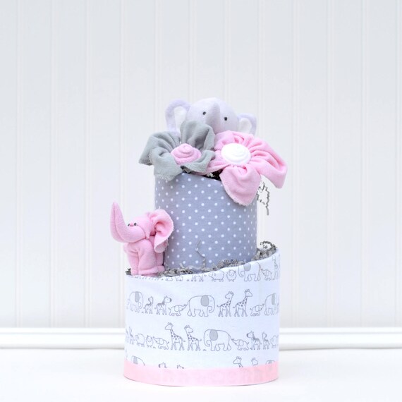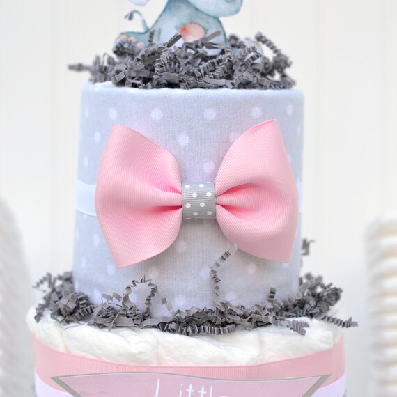 Pink Elephant Baby Shower Decoration Pink Elephant Diaper Cake Pink Gray Little Peanut Baby Shower Centerpiece