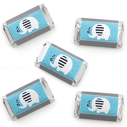 Blue Elephant Mini Candy Bar Wrapper Stickers Boy Baby Shower Or Birthday Party Small Favors 40 Count