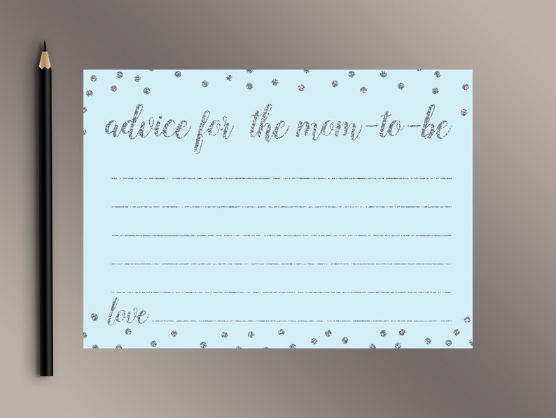 Advice For The Mom To Be Blue Silver Baby Shower Games Silver Confetti Baby Shower Game Ideas Mommy Advice Cards Baby Shower Activities