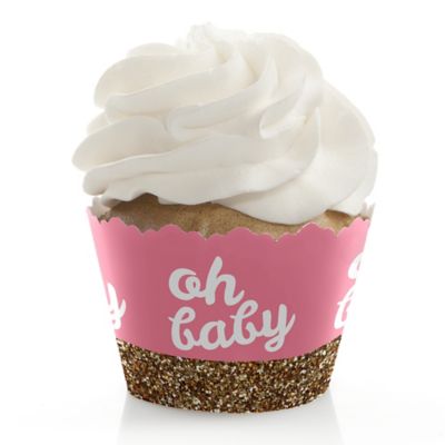 Hello Little One Pink And Gold Girl Baby Shower Decorations Party Cupcake Wrappers Set Of 12