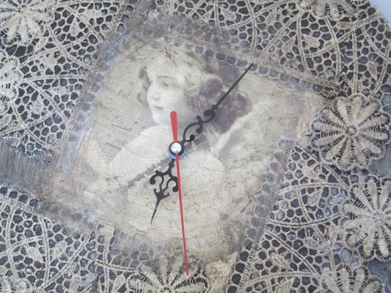 Wall Clock Baby Shower Gift Angel Music Notes Vintage Lace Home Decor Recycled Gift Under 50