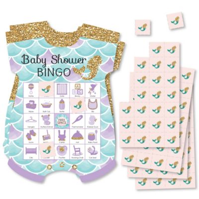 Let S Be Mermaids Picture Bingo Cards And Markers Baby Shower Shaped Bingo Game Set Of 18