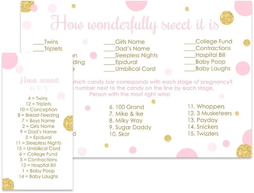 Pink And Gold Baby Shower Candy Bar Game 25 Pack