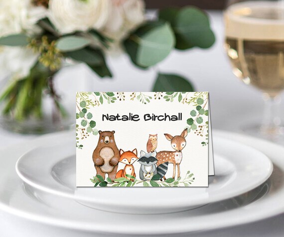 Woodland Baby Shower Tented Place Cards Forest Animals Diy Guests Name Party Decor Fox Table Decoration Owl Double Sided Deer Food Labels