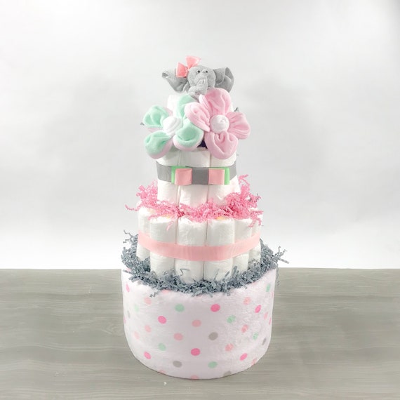 Elephant Diaper Cake For Girl Re Usable Cloth Diaper Cake Elephant Baby Shower Decor Baby Girl Elephant Baby Shower