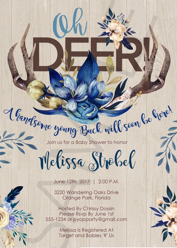 Deer Baby Shower Invitation Deer Theme Boy Baby Shower Invitation Oh Deer Antlers Baby Shower Pdf Template Create Today B011