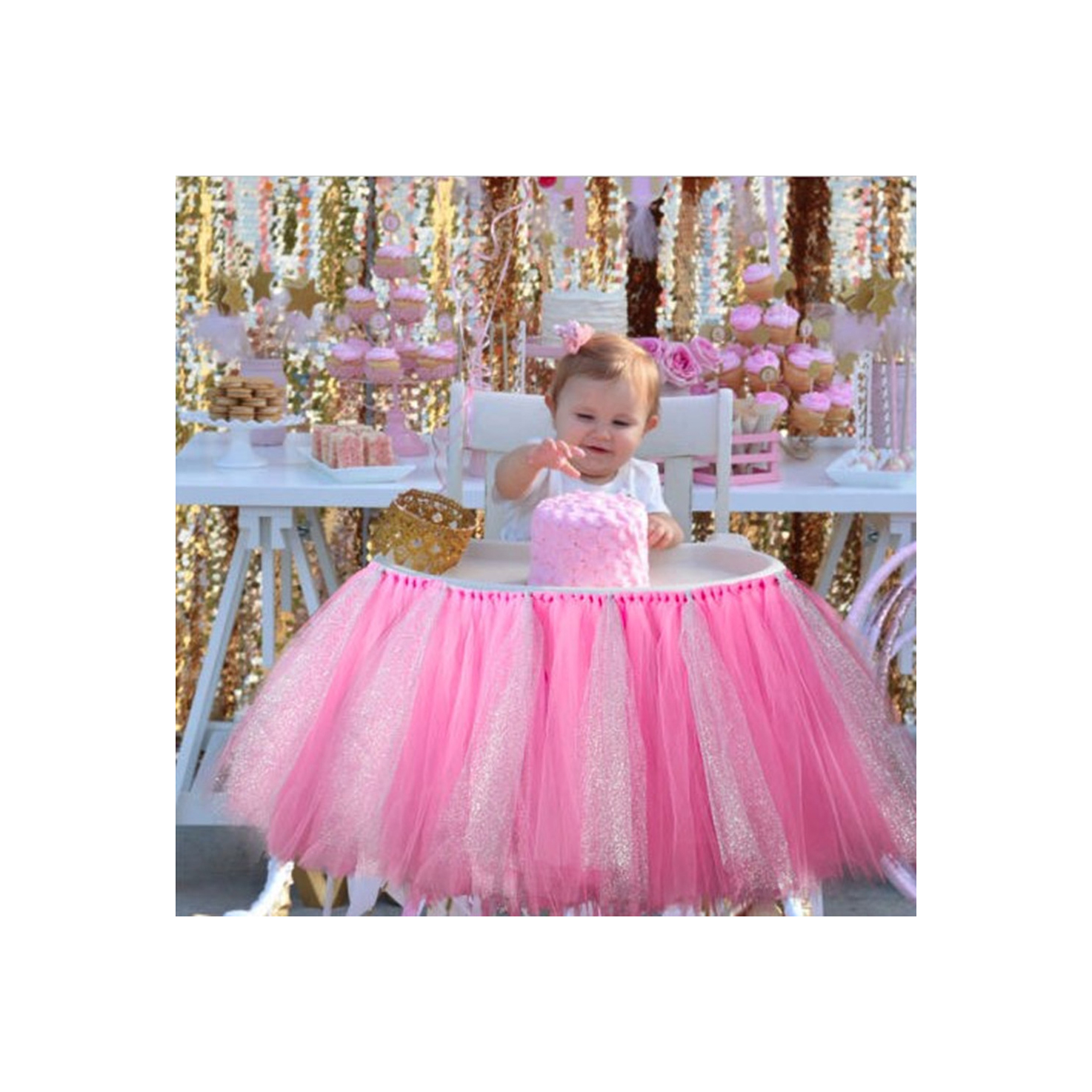 Tutu Tulle Table Skirts High Chair Decor Baby Shower Decorations For Boys Girls Party Set Birthday Party Supplies Deep Pink Silver