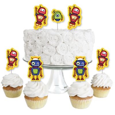 Robots Dessert Cupcake Toppers Baby Shower Or Birthday Party Clear Treat Picks Set Of 24