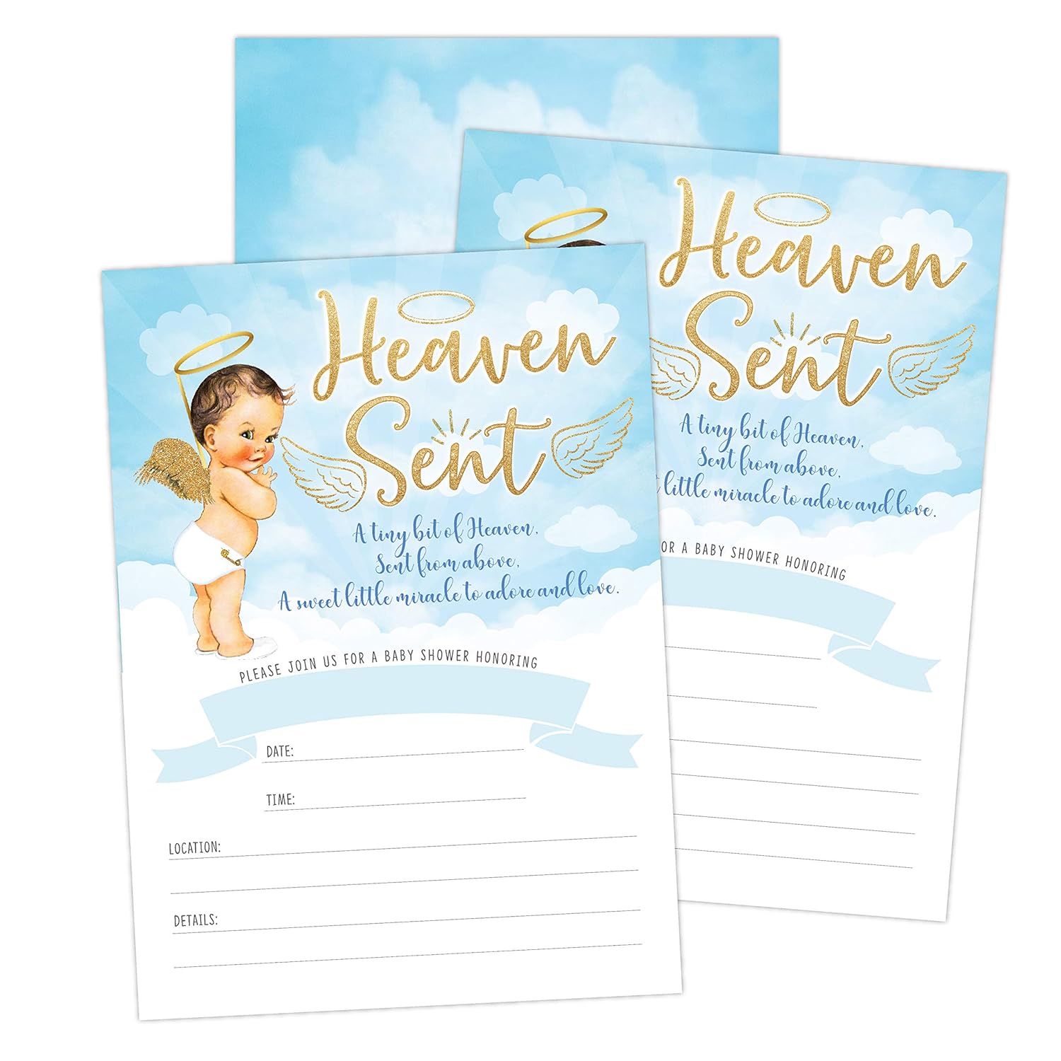 Amazon Com Heaven Sent Boy Baby Shower Invitation Cute