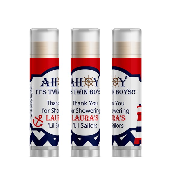 Ahoy Its Twin Boys Nautical Twin Baby Shower Favor Ideas Twin Boy Baby Shower Themes Twin Shower Supplies Lip Balm Favors 15pc