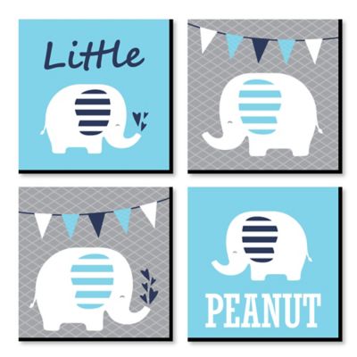 Blue Baby Elephant Nursery Decor 11 X 11 Inches Kids Wall Art Baby Shower Gift Ideas Set Of 4 Prints For Baby S Room