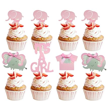Suhome Pink Elephant Cake Topper Baby Elephant Themed Cupcake Picks It Is A Girl Baby Shower Birthday Party Decorations Supplies