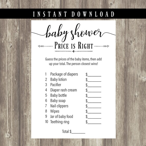 The Price Is Right Baby Shower Game Editable File