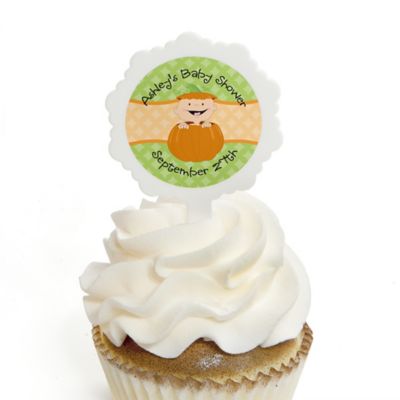 Little Pumpkin 12 Cupcake Picks 24 Personalized Stickers Baby Shower Cupcake Toppers