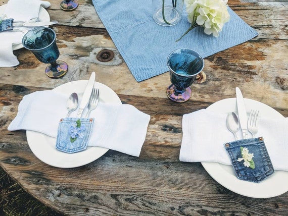 Denim Pockets Tiny Pockets Jean Pockets Silverware Holder Denim Pocket Utensil Holder Country Wedding Denim Baby Shower