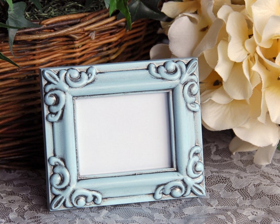 Farmhouse Light Blue Photo Frame Small Vintage Coastal Style Picture Frames French Country Nursery Shelf Decor Baby Shower Gift Ideas