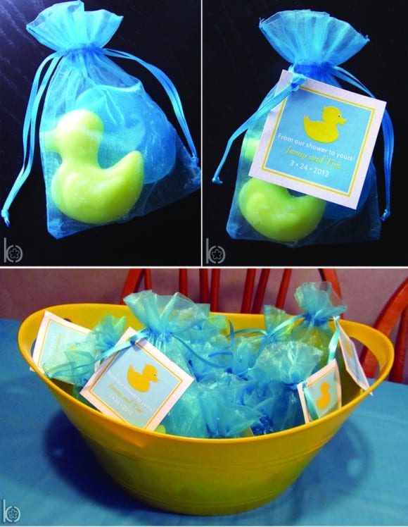 Duck baby shower favors can be ducky stationary ducky socks small ducky photo holders ducky key chains ducky bookmarks sponges in the shapes of ducks ducky band aids ducky candles ducky soaps you might find beautiful clear glycerin soaps that have a real little rubber ducky inside of them etc.