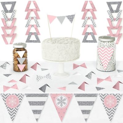 Pink Winter Wonderland Diy Pennant Banner Decorations Holiday Snowflake Birthday Party And Baby Shower Triangle Kit 99 Pieces
