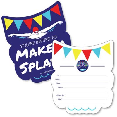 Making Waves Swim Team Shaped Fill In Invitations Baby Shower Or Birthday Party Invitation Cards With Envelopes Set Of 12