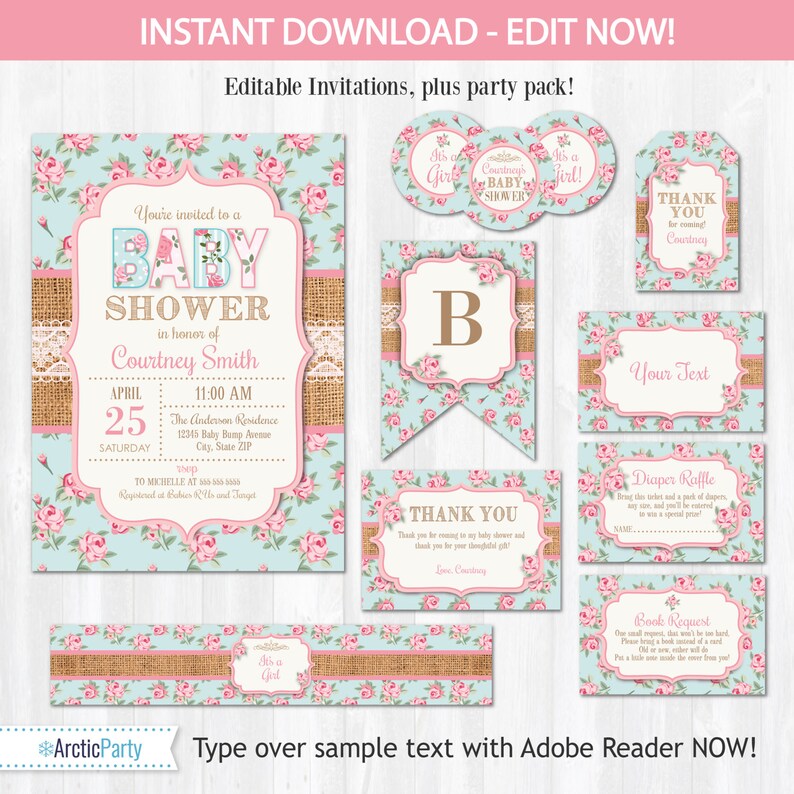 Shabby Chic Baby Shower Invitations Shabby Chic Baby Shower Ideas Shabby Chic Invitations Instant Download Edit Now