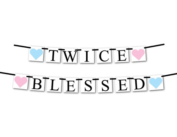 Printable Twice Blessed Banner Printable Baby Shower Decorations Gender Reveal Party Ideas Pink Or Blue Its Twins Surprise Party Decor