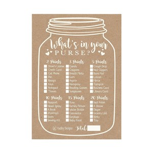 Details About 25 Kraft Rustic What S In Your Purse Baby Shower Game Funny Ideas Coed