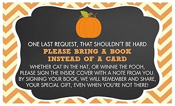 Bring A Book Cards Pumpkin Baby Shower Fall Autumn Chalkboard Sprinkle Insert Request Library Collection Keepsake Gift Idea Activity Game Chevron