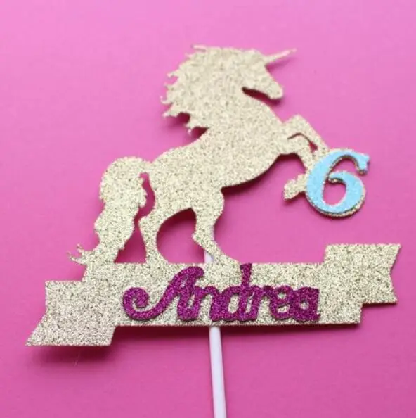 Us 14 03 25 Off Personalize Glitter Any Name Age Rainbow Unicorn First 2nd Magic Birthday Party Cake Topper Baby Shower Cake Toppers In Cake