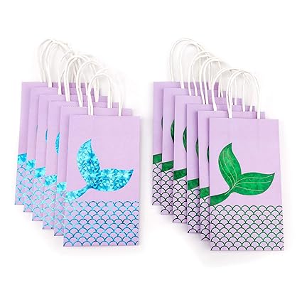 Savita Mermaid Gift Wraping Bags Paper Goodie Bag Bithday Baby Shower Present Candy Treat Bags Mermaid Party Supplies For Kids Adult 12 Packs