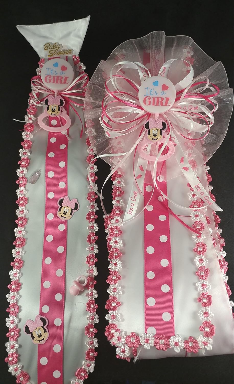 Party Supplies Pink Its A Girl Baby Minnie Mouse Baby Shower Sash Tie Set
