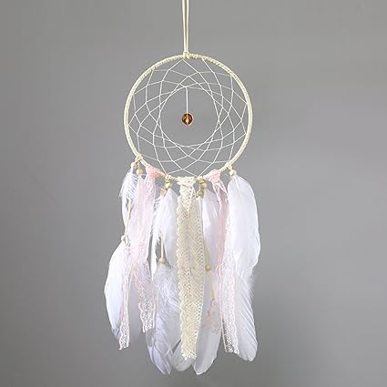 Handmade Dream Catcher With Lace Ribbon Feather Tassel Handmade Traditional Wall Hanging Dreamcatcher For Bedroom Kids Boys Girls Room Baby Shower