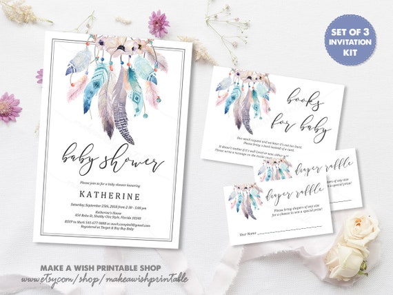 Dreamcatcher Baby Shower Invitation Tribal Boho Baby Shower