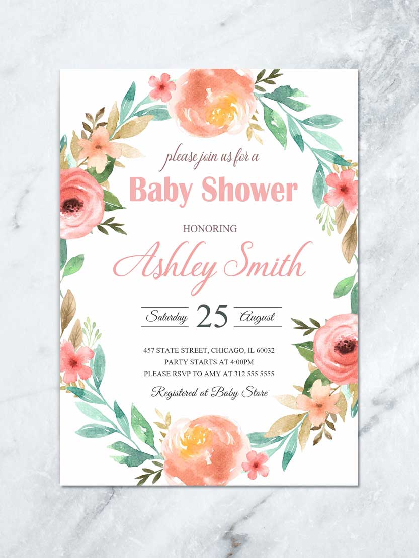 Woodland Boho Baby Shower Invitation Floral Wreath Baby Invite