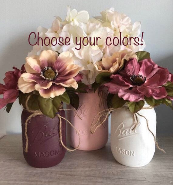 Rustic Mason Jar Centerpieces Boho Party Decor Wedding Shower Table Decor Baby Shower Painted Mason Jars Farmhouse Home Decor