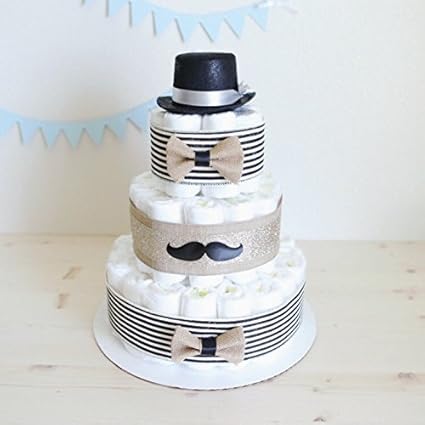 3 Tier Gentleman Mustache Diaper Cake For Baby Boy Little Man Baby Shower Centerpiece Decoration Unique Gift Black Hat Gentle Man Nursery Decor