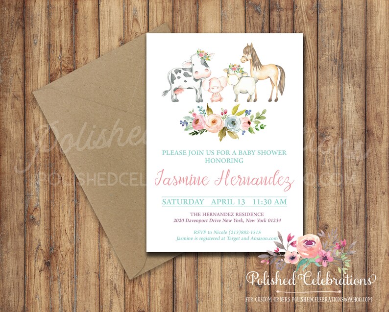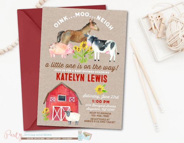 Farm animal baby shower invitation ideas. There are 16734 farm baby shower for sale on etsy and they cost 2958 on average. No matter what youre looking for or where you are in the world our global marketplace of sellers can help you find unique and affordable options. You can set up a truly memorable baby shower party that guests will ooo and ahh at complete with the most precious decor favors and more.