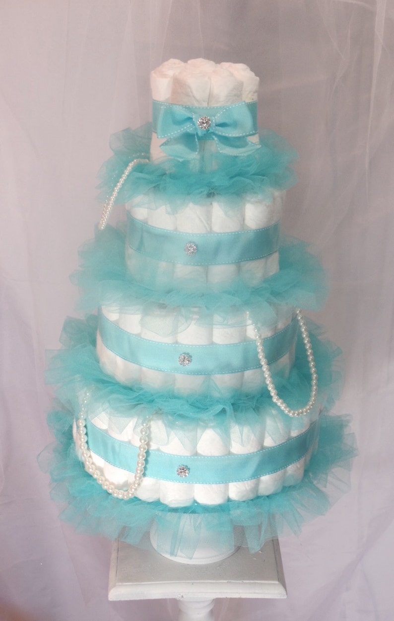 Diaper Cake Girl Baby Shower Decorations Teal Baby Shower Decorations Diamonds Pearls Fancy Baby Girl Diaper Cake