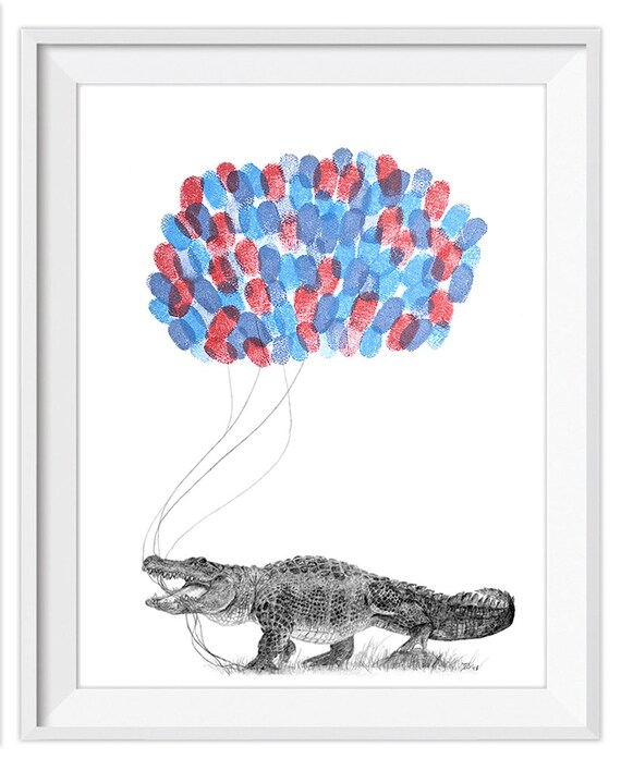 Alligator Print Fingerprint Art Baby Gift Gator Fan Birthday Party Baby Shower Guestbook Kid Craft Thumbprint Tree Hostess Gift