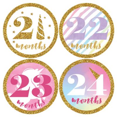 Baby Girl Second Year Monthly Sticker Set Rainbow Unicorn Baby Shower Gift Ideas 13 24 Months Stickers