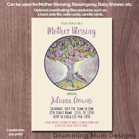 Blessingway Invitation Mother Blessing Invite Tree Of Life Blessing Way Baby Shower Pregnant Woman Alternative Homebirth Natural Birth
