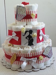 Details About 3 Tier Diaper Cake Red White Ready To Pop Baby Shower Gift Centerpiece Boy Girl